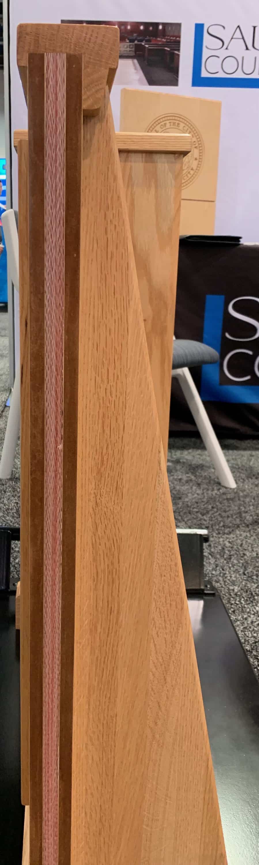 In our booth this year, we highlighted our Jury Seating and Perk Folding Chair. While also debuting our brand new Jury Screen with ballistic material! The ballistic material is a popular request within Courtrooms and Judiciary Centers. We can be build it into nearly any Courtroom furniture piece.