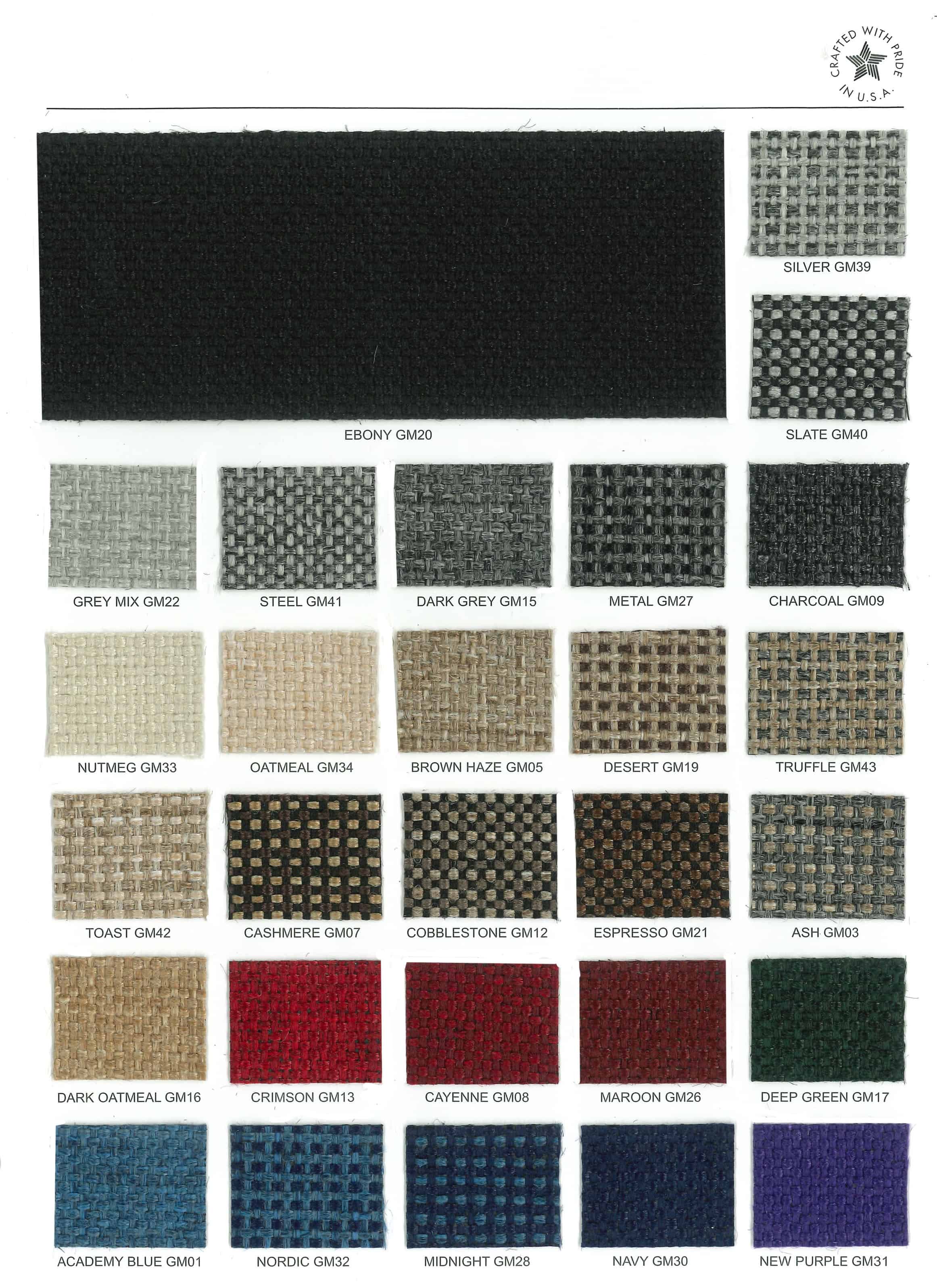 AMC Performance Textiles AMC Gemini Fabric CardChoose an AMC Performance Textiles fabric pattern for any of our worship pews, chairs, or auditorium seats.